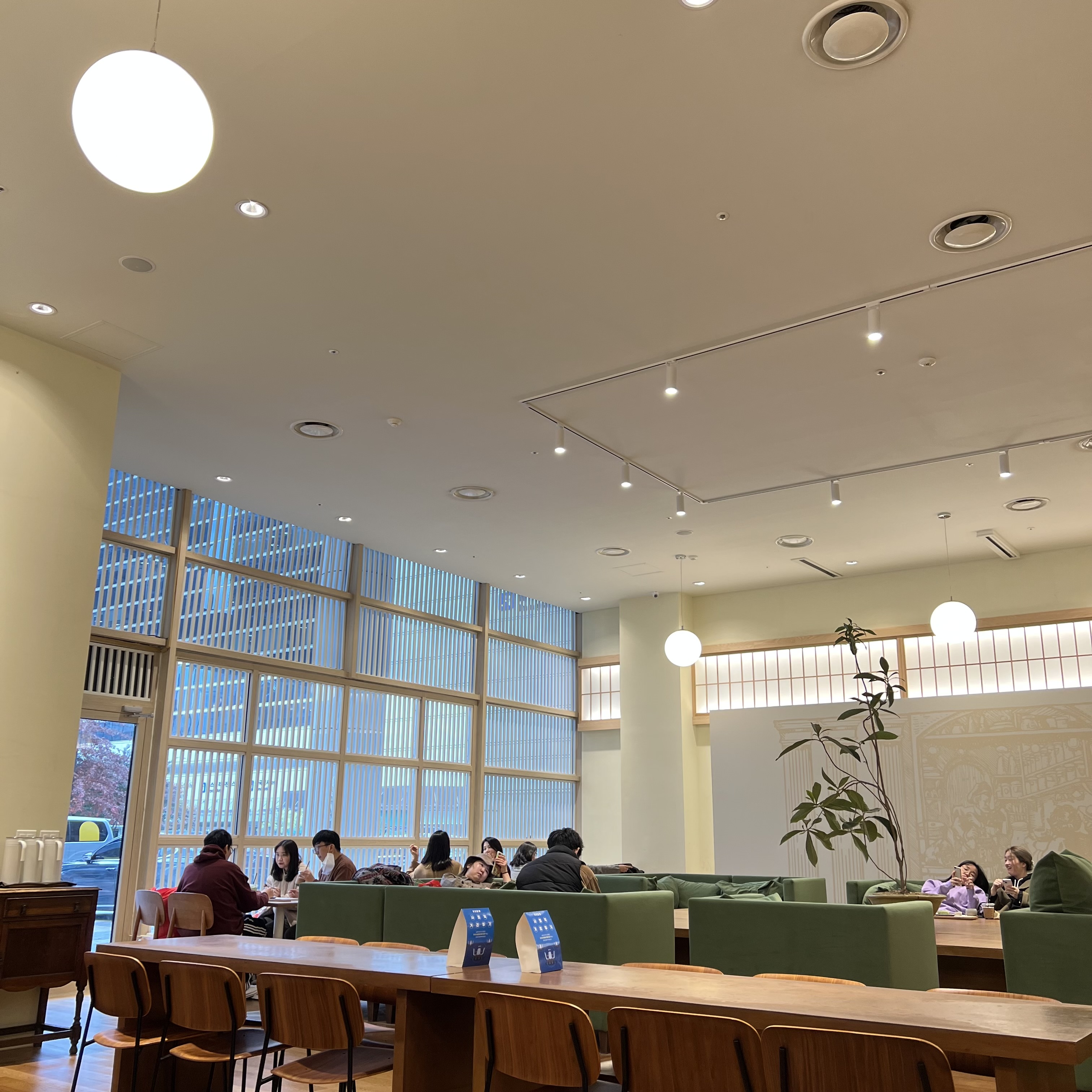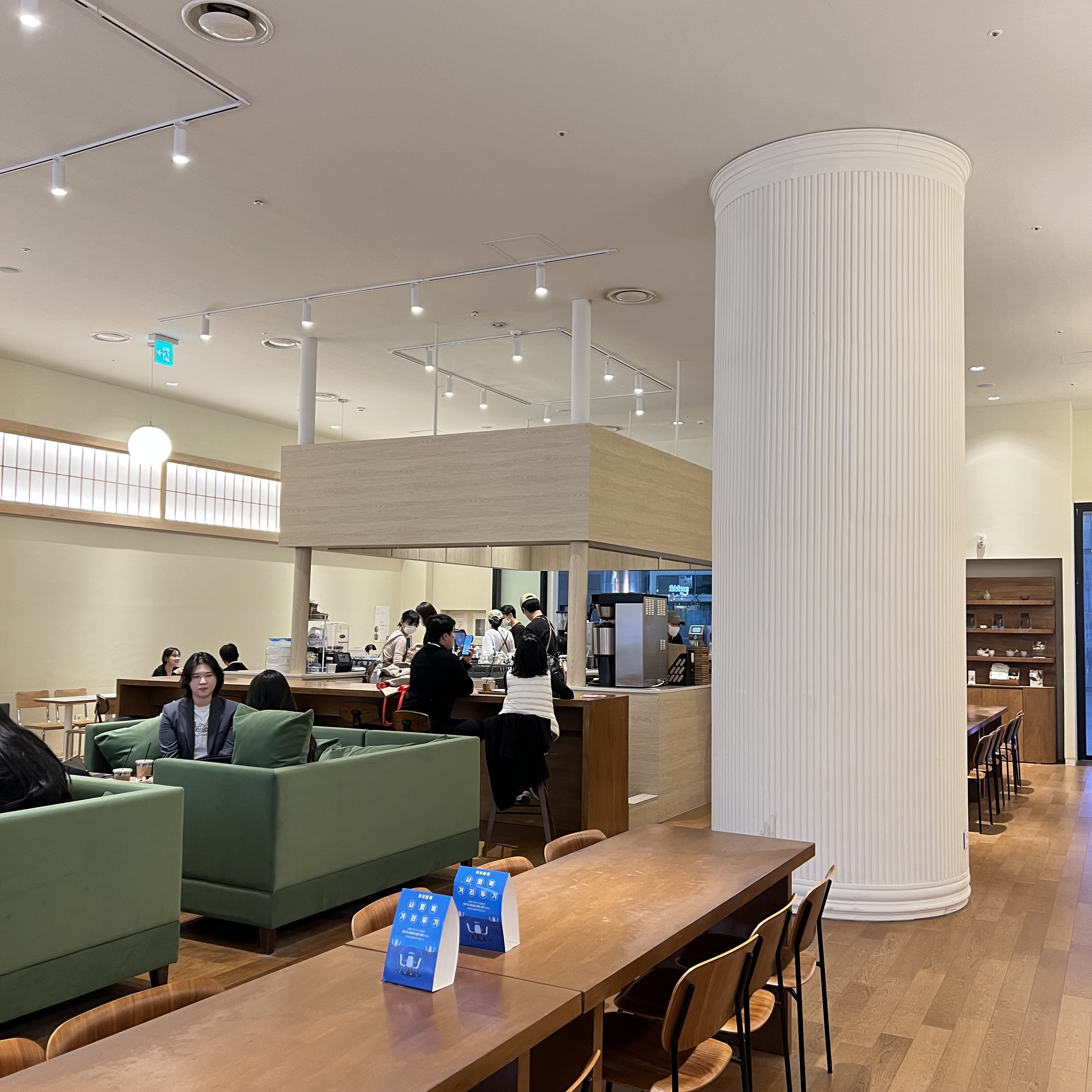 그리고 입장하자마자 주문받을 수 있도록 되어 있고, 그 뒤쪽으로 넓게 좌석을 배치해서 개방감이 드는 구조였습니다.